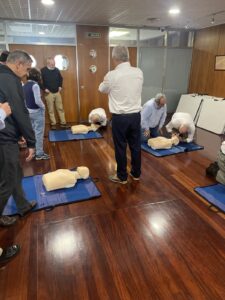 Entre las numerosas actividades que realiza la Delegación en Cantabria de la Real Asamblea Española de Capitanes de Yate (RAECY) una de sus principales, y también primordial objetivo, es la formación o, mejor dicho, recordar y actualizar los conocimientos que ya tenemos en temas de primeros auxilios y emergencias a bordo de un barco. En esta ocasión y gracias a nuestro amigo Cholo hemos realizado un cursillo teórico-práctico, de cuatro horas de duración, sobre PRIMEROS AUXILIOS Y EMERGENCIAS EN LA MAR principalmente enfocado a su práctica a bordo de un barco y/o navegando, cuando no se cuentan con las asistencias que, normalmente, pueden acudir rápidamente cuando se está en tierra, lo que puede agravar y mucho cualquier accidente, gracias al instructor, sus conocimientos y amena docencia, a la práctica de RCP (Reanimación cardiopulmonar) con el material apropiado, y hasta con un desfibrilador de prácticas, aprendimos, y a la vez recordamos/actualizamos, todos esos conceptos tan importantes y necesarios que, quizás, teníamos un poco olvidados. Posteriormente y después de una animada comida se entregaron los diplomas correspondientes a los asistentes y un recuerdo, con nuestro mayor agradecimiento, para el instructor. La intención es continuar realizando este tipo de actividades que son tan necesarias y que, creemos, deberían ser obligatorias para todo el mundo.