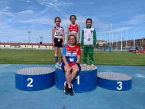 – Alba Arias Sánchez: Peso / 7.30 mts (BRONCE) y 150 mts / 20.7