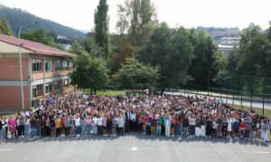 La Reina, junto a los alumnos de Formación Profesional, alumnos de secundaria y el profesorado del IES “Doctor José Zapatero Domínguez” de Castro-Urdiales (Cantabria).
