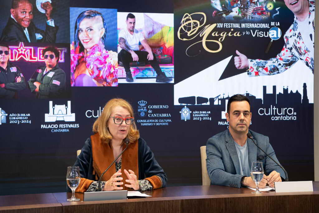 La directora general de Cultura, Eva Guillermina Fernández, junto al mago cántabro Raúl Alegría, han presentado el espectáculo que forma parte del Festival Internacional de la Magia y lo Visual, que cumple su 14 edición y que incluye también el programa ‘Pueblos con encanto’, que comenzó a finales de agosto con actuaciones en distintos municipios de Cantabria.