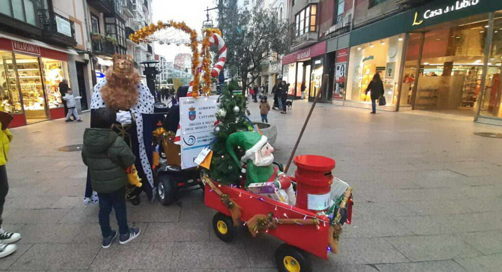 La asociación de comerciantes del Casco Vejo de Santander ha traído desde Oriente a su Majestad el Rey Gaspar, al que podemos ver desde hace días recorriendo las calles del centro de la ciudad con su pequeña carrocita. Los Reyes Melchor y Baltasar no han podido venir porque están preparando todos los juguetes y regalos para los niños que son muchos, y los camellos necesitan descargar y comer mucho para coger fuerzas para que puedan cargar luego con todos los regalos, por eso los comerciantes del Casco Viejo de Santander le han dejado a su Majestad el trenecito para que pueda moverse por Santander.