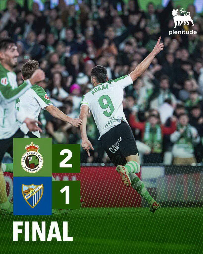 En el minuto 5 de partido el Racing encaja el 0-1 por mediación de Lobete, 0.-1; el equipo cántabro reacciona y Juan Carlos Arana marca el empate solo 10 minutos después, 1-1; en el minuto 28 de partido, de nuevo, Juan Carlos Arana consigue marcar y adelanta al equipo en el electrónico, 2-1; con este resultado se llega al descanso; gol anulado al Málaga por fuera de juego de Lobete en el minuto 57; final del partido 2-1 en El Sardinero.
