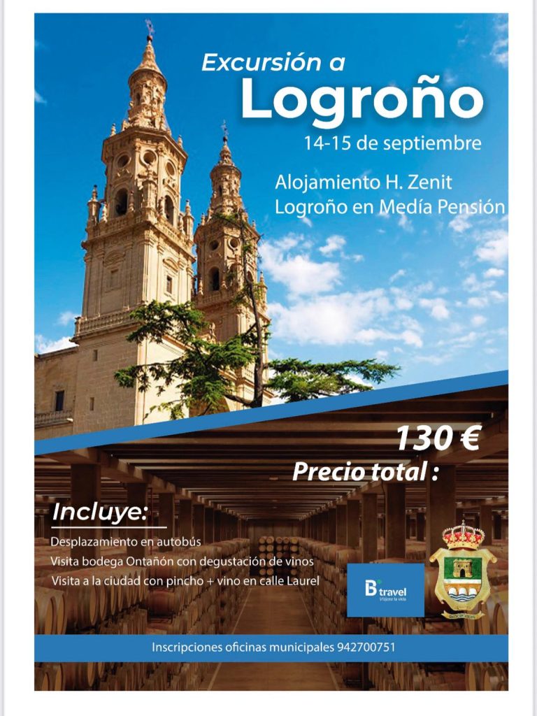 El Ayuntamiento de Mazcuerras ha organizado una excursión a Logroño, los días 14 y 15 de Septiembre, el precio por persona es de 130€ por persona, e incluye: