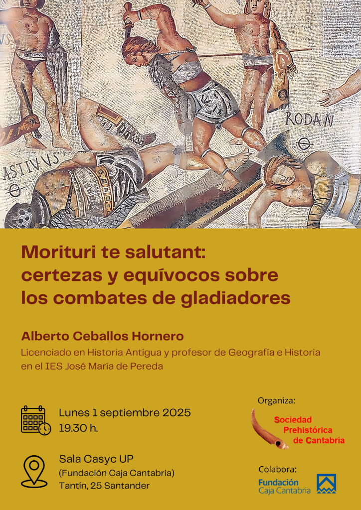 Santander, Casyc UP: «Morituri te salutant: certezas y equívocos sobre los combates de gladiadores», lunes 1, 19.30 h.