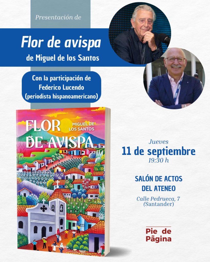 Personajes inolvidables, situaciones inverosímiles en ocasiones con un toque de humor y siempre con una narrativa propia del realismo mágico, Flor de avispa trata en sus más de 500 páginas temas como la redención, la expiación y la corrupción política. En palabras del escritor nicaragüense, Sergio Ramírez, Premio Cervantes 2017 y prologuista de Flor de avispa: «En la novela, y no lejos de la realidad, confluyen nicaragüenses y costarricenses marcados por la aventura, descastados, contrabandistas, fugados de la justicia, curas rebeldes, adivinas, prostitutas, exiliados todos hasta ese lugar perdido que se vuelven una nación por sí misma, como en tantas otras fronteras latinoamericanas». El autor, Miguel de los Santos, es una de las figuras más importantes de la historia de la radio y la televisión españolas. Periodista, realizador y escritor, ha publicado Relatos de mi memoria (2018) y las novelas El fabuloso mundo de Mateo Benavides (2019) y Cabalgando sobre un caballo de cartón (2021).