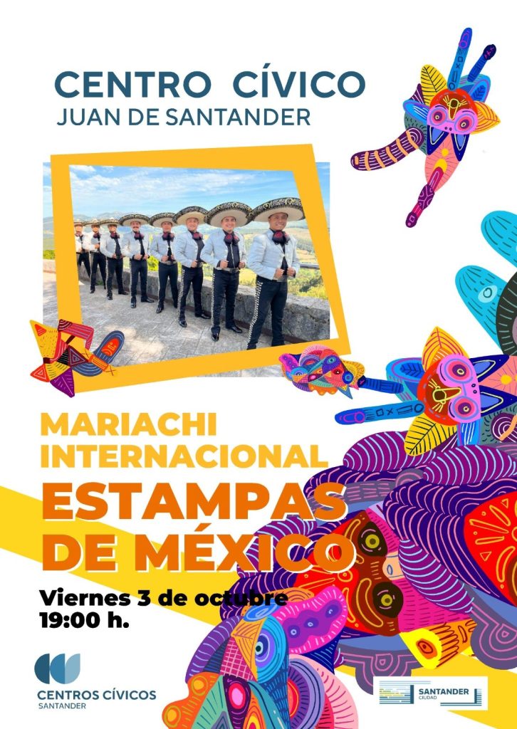 El Ayuntamiento de Santander, a través de la Concejalía de Participación Ciudadana, ha programado para el próximo viernes 3 de octubre, a las 19.00 horas, la actuación de un grupo de mariachis.    Así lo ha anunciado la concejala del área, Lorena Gutiérrez, quien ha detallado que el grupo lleva por nombre ‘Estampas de México’ y que está compuesto por 8 componentes, tres violines, dos trompetas, guitarrón, guitarra, vihuela, y 8 voces procedentes de México, concretamente del distrito de Hidalgo, que ofrecerán su repertorio clásico del país azteca y que además contará con algún toque cántabro.