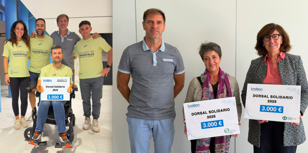 El Triatlón Ciudad de Santander 2025, éxito total en participación para esta edición de 2025, ha hecho entrega de 3.000 euros a cada una de las tres asociaciones beneficiarias del Dorsal Solidario: Fundación Síndrome de Down Cantabria, Calidad en Dependencia y Desafío Inmortales.