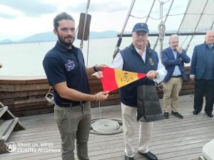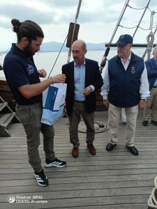 Primera visita a Santander de la Nao Santa María Capitana del descubrimiento mandada por el insigne marino y cartográfico cántabro Juan de la Cosa. El viernes día 4 de Octubre merced a la gestión realizada por la Delegación de Cantabria y Castilla y León de la Real Liga Naval Española se realiza en atraque en el muelle de Calderón del Puerto de Santander de la Nao. A las trece horas una Delegación de personalidades entre las que se encuentran representante del Ayuntamiento de Santander, Capitanía Marítima, Comandancia Naval, Capitanes de Yate y Guardia Civil del Mar entre otras autoridades con numerosas damas y aaballeros de la Real Liga Naval Española hacen el recibimiento oficial a la Nao que es recogido por su Capitán y Tripulación. El Delegado de la Real Liga Naval le hace entrega de la Grímpola Oficial . El representante del Ayuntamiento entrega un reproducción con dedicatoria. Posteriormente el Capitán de la Nao dirige una visita por todas las cubiertas y dependencias de la Nao. Por la tarde, noche del mismo viernes la Delegación de la Real Liga Naval Española ofrece a socios/as una recepción en la Nao que cuenta con la colaboración del Club Náutico Santander, Grupo Bruma y Coro de Ucranianos. Un acto lleno amor a la mar que en palabras del Delegado, agradece también al Puerto de Santander su colaboración.