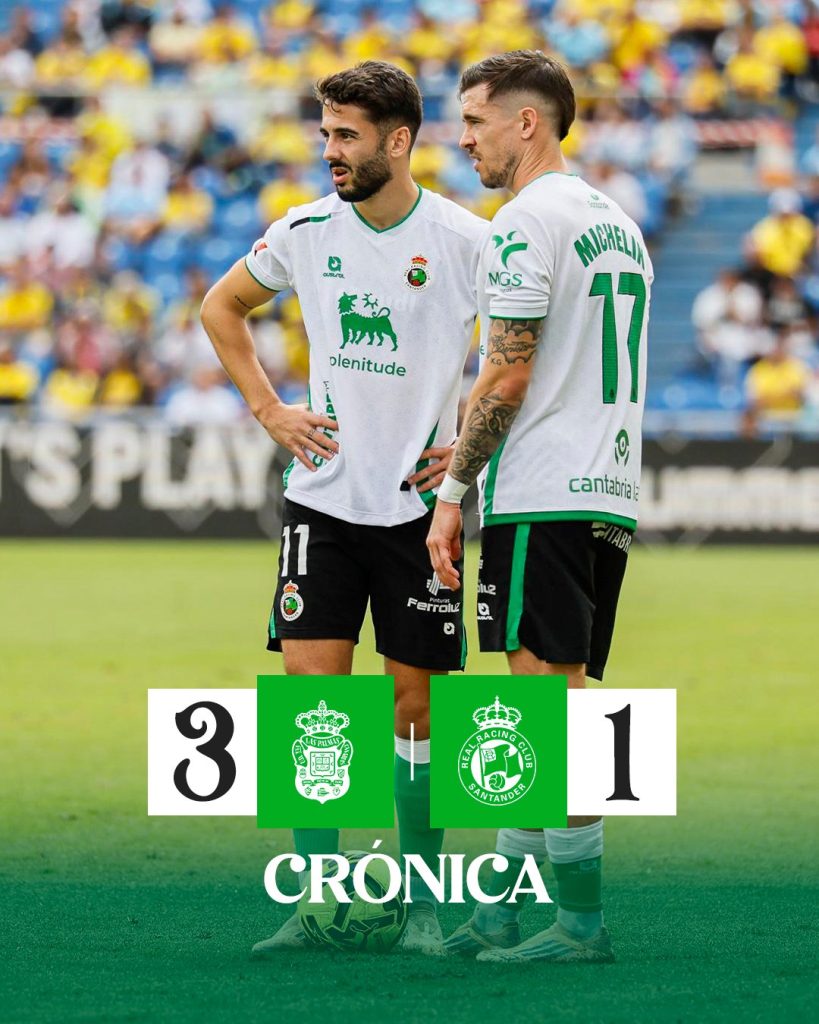 El Racing cayó en el estadio Gran Canaria (3-1) y vio cómo la Unión Deportiva Las Palmas cortó su positiva dinámica, pues el conjunto cántabro había ganado tres partidos consecutivos en LaLiga Hypermotion y superado la primera eliminatoria de la Copa del Rey. La escuadra dirigida por José Alberto no acaba con la fatídica estadística que tiene en el estadio amarillo, donde no gana desde hace casi cuatro décadas. Los verdiblancos, que siguen líderes de LaLiga Hypermotion, tienen que pensar ya en su próximo envite, que será ante el Granada CF en los Campos de Sport el sábado, 15 de noviembre, a las 21:00 horas.