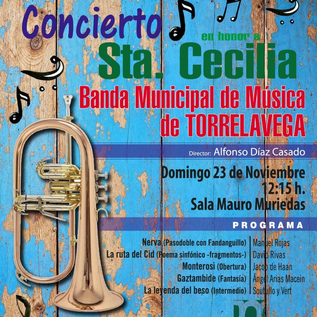 Como cada 22 de noviembre se celebra Santa Cecilia, patrona de la música y de los músicos, de lo cual sabe mucho y muy bien en Torrelavega. Este domingo 23 de noviembre a las 12:15 h. podéis disfrutar del tradicional concierto de nuestra Banda Municipal en la Sala Mauro Muriedas.