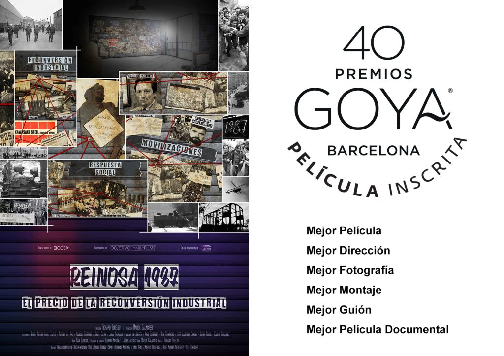 “Reinosa 1987: El precio de la reconversión industrial” opta a 6 Premios Goya. Este documental del director cántabro Richard Zubelzu, competirá en seis categorías en la 40ª edición de los Premios Goya. Los académicos tienen la oportunidad de poner en valor la memoria histórica, el trabajo documental y dar voz a toda una comunidad que vivió de cerca uno de los capítulos más intensos de la reconversión industrial en España.