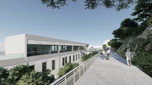 Se ha diseñado un edificio intuitivo y funcional que garantiza el bienestar de los trabajadores, combinando la sostenibilidad medioambiental con la innovación tecnológica y la flexibilidad. En el alzado que da a la playa de vías, la fachada presenta una gran cristalera continua que garantiza la iluminación de las estancias, cubierta por una envolvente de lamas que la protege de la luz solar directa. Por su parte, el alzado contrario, que da al parque, presenta una superficie con menor presencia de vidrio. El proyecto incluye la urbanización del entorno, lo que incluye viales peatonales y rodados, jardinería, aparcamiento en superficie de aproximadamente 150 plazas, y un cerramiento perimetral.
