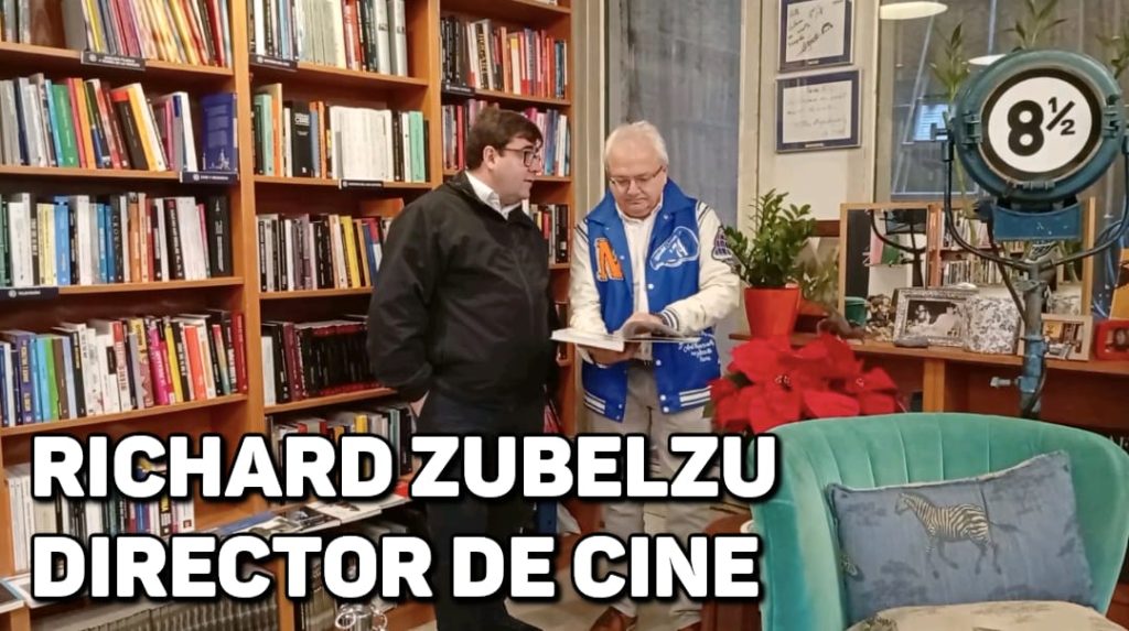 VÍDEO ENTREVISTA CON EL DIRECTOR DE CINE RICHARD ZUBELZU (REINOSA, 1978), DESDE LA LIBRERÍA 8 Y MEDIO DE MADRID. «Este es uno de mis rincones favoritos de Madrid», «nos ha impulsado mucho tanto a Magda como a mi«, «María y Jesús, que ya no está con nosotros, nos han ayudado mucho«, «en el mundo del documental aquí hemos hecho muchas entrevistas», «aquí tienes una relación muy profunda con el mundo del cine», «aquí ha venido Quentin Tarantino, por ejemplo«, «2025 ha sido un año muy complicado», «el documental de Reinosa está entre los mejores de España, y sin ayuda institucional«, «en Madrid hemos llenado con público muy diverso y heterogéneo y eso es un orgullo», «creo que no hemos llegado arriba todavía«, «la IA (Inteligencia Artificial) ha existido siempre, y en el cine acelera procesos», «al final se creará una línea roja sobre la IA», «para 2026 tenemos varios proyectos sobre el papel y uno de ellos es el documental sobre el activista y político Pedro Zerolo«, «va a colaborar con nosotros el productor cántabro Pedro de la Escalera, es la primera vez que vamos a colaborar juntos y para mi es la persona más importante que hay en Cantabria ahora mismo como productor cinematógráfico«, «cortos de ficción ya hemos hecho», «hay muchos proyectos de ficción, Magda tiene una historia de su bisabuelo que fue discípulo de Sorolla«, «es muy diferente rodar ficción a documental», «SIRAT es la mejor película que se ha hecho en España en los últimos 15 años, y va camino de los Óscar», «hay muchas películas que hay que ir a verlas al cine», «no solo es la película, sino una charla posterior en el cine, saber cómo se ha hecho esa película …», «el dos de febrero el documental de Reinosa se estrena en la plataforma Filmin y este año le queremos dar un salto a Estados Unidos y Latinoamérica«, «y hay un tema en Cantabria que me encantaría hacer que es de una gran figura futbolística que es Paco Gento«, «no se ha hecho todavía un documental que merezca el reconocimiento esa gran persona y esa gran familia que son los Gento en Cantabria y para hacerlo bien hay que hacerlo con un presupuesto digno«, «el cine en Cantabria tiene unas posibilidades enormes, el problema que veo es la burocracia, son unos plazos muy largos», «hicimos un proyecto para fundar en Reinosa la Ciudad del Cine», «la Filmoteca de Cantabria se está abriendo a más lugares«, «voy a seguir dando ideas porque Cantabria tiene muchas posibilidades«, «para 2026 pediría a los políticos que aprendan de la época de la transición, que estén para los ciudadanos». Entrevista realizada en la mañana del sábado 27 de diciembre de 2025 en la Librería Ocho y Medio en la calle Martín de los Heros en Madrid, al lado de la Plaza de España, 12.00 h.