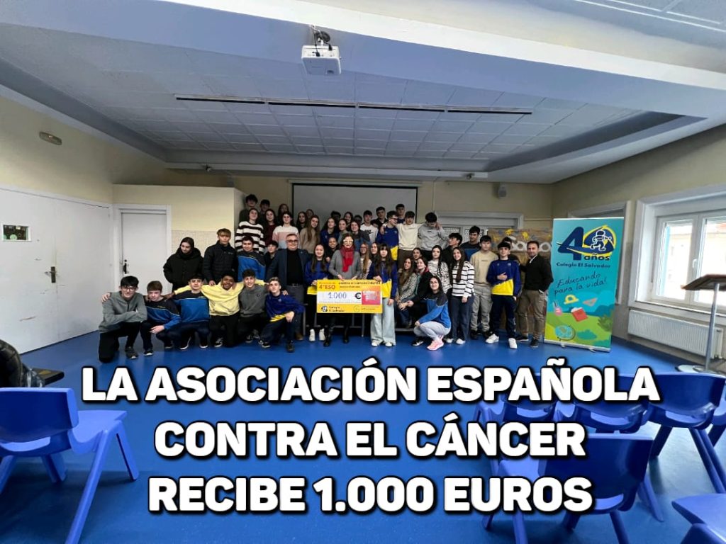 El cheque será destinado a financiar la investigación contra el cáncer infantil. “Sois un colegio supersolidario, lo que es obra de los padres, los profesores y de vosotros mismos”, agradeció la presidenta de la junta local de la AECC en Torrelavega, Ana Barca. De hecho, la colaboración entre la Cooperativa de Enseñanza El Salvador de Barreda y la Asociación Española contra el Cáncer se mantiene desde hace años, y el centro ya está preparando la que será su IV Marcha Escolar contra el Cáncer Infantil, que se celebrará el próximo 10 de febrero. Estos 1.000 euros entregados hoy a la AECC son una parte de los 4.010 euros obtenidos durante la participación de Samuel Díaz, Claudia San Juan y Leo Arce, alumnos de 4º de Secundaria del colegio El Salvador, las pasadas Navidades en el concurso de televisión de TVE2 Saber y ganar, el programa cultural más veterano de la historia de la televisión en España.