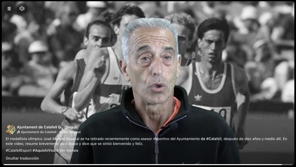 «El medallista olímpico José Manuel Abascal se ha retirado recientemente como asesor deportivo del Ayuntamiento de #Calafell, después de diez años y medio allí. En este vídeo, resume brevemente esta etapa y dice que se sintió bienvenido y feliz«, así lo recogen las redes sociales del Ayuntamiento tarraconense de Calafell.