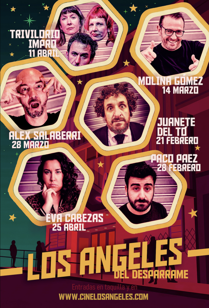 Si llegan las risas al Cine Los Ángeles !!! y llegan de la mano de estupendos humoristas !!! Llega Los Angeles del Desparrame !!! Así se han programado 6 espectáculos de humor, concretamente 5 monólogos de humor y un espectáculo de Improvisación … que arrancaron el pasado 21 de febrero y llegaran hasta el 25 de abril…