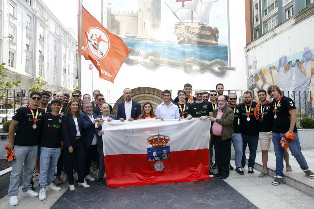 Buruaga recibe y felicita al Bathco Balonmano Torrelavega: «Vuestro club es un modelo a seguir»