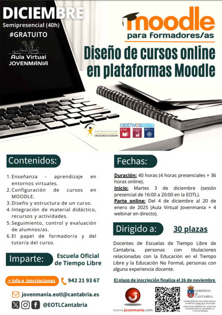 ‘Diseño de cursos online en plataformas Moodle’ dirigido a docentes de Escuelas de Tiempo Libre de Cantabria