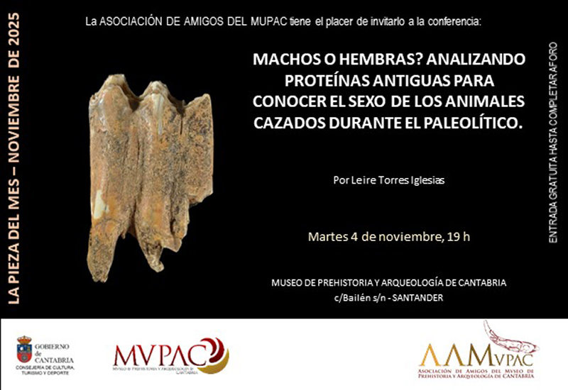 Martes 4 de noviembre a las 19 horas, Mercado del Este, calle Bailén s/n, Santander, entrada libre El ciclo ‘La pieza del mes’ organizado por la Consejería de Cultura, Turismo y Deporte, en el Museo de Prehistoria y Arqueología de Cantabria, MUPAC, se centrará en su próxima convocatoria, en la conferencia titulada ‘¿Machos o hembras? […]