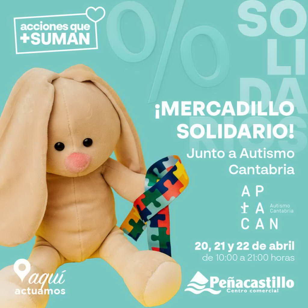 El centro comercial Peñacastillo llevará a cabo el 20, 21 y 22 de abril un mercadillo solidario de la mano de APTACAN Autismo Cantabria. En concreto, el evento se desarrollará tanto el jueves como el viernes y sábado en el horario del propio centro, de 10:00 a 22:00 horas.