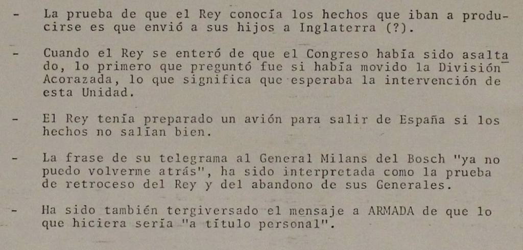«Campaña contra S.M. el Rey en relación con el 23-F»