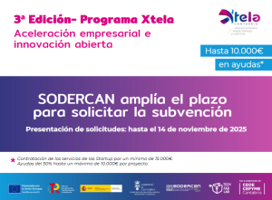 SODERCAN amplía el plazo de las ayudas para las empresas del Programa Xtela de Aceleración Empresarial 22/10/2025