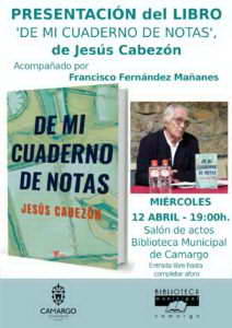 Camargo celebra este miércoles 12, 19.00 h. la presentación del nuevo libro de Jesús Cabezón 11/04/2023