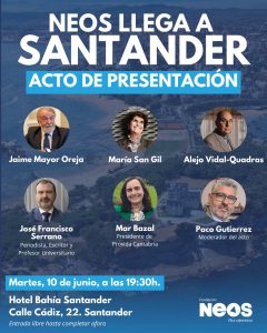 Fundación NEOS, con su presidente Jaime Mayor Oreja, aterriza en Santander, martes 10, Hotel Bahía, 19.30 h. 09/06/2025