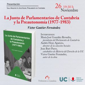Parlamento de Cantabria: Presentación del libro «La Junta de Parlamentarios de Cantabria y la Preautonomía (1977-1983)», miércoles 26 de noviembre, 19.30 h. 24/11/2025
