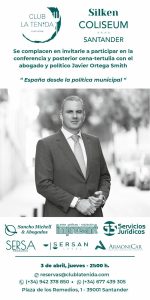 Javier Ortega Smith, con el Club La Tenida de Santander, Hotel Silken Coliseum, jueves 3, 21.00 h. 01/04/2025