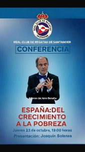 Alfonso del Amo-Benaite: «España: Del crecimiento a la pobreza», desde el Real Club de Regatas de Santander, jueves 23, 19.00 h. 20/10/2025