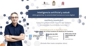 «Inteligencia artificial y salud», con José María Lassalle, en el Colegio de Médicos de Cantabria, miércoles 24, 19.00 h. 24/09/2025