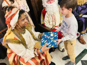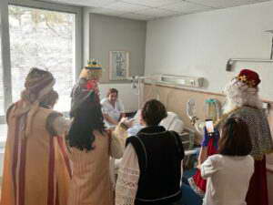 Como cada año, los Reyes Magos de Oriente hicieron una parada en el Hospital Santa Clotilde de la OH San Juan de Dios dentro de su apretada agenda en la noche más mágica del año. Después de realizar la tradicional ofrenda al Niño en la Capilla del Centro Hospitalario de la Avenida General Dávila, sus Majestades, acompañados de un paje, visitaron a todos los pacientes de las diferentes Unidades y Servicios del Hospital para hacerles entrega de un obsequio.